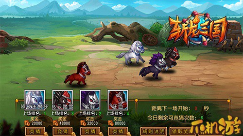 “赛马场”就是另一处考验眼力和手气的地方了。这里分为初级、中级、高级三个级别,竞猜奖励也是依次增加。每场赛马,玩家可以从四匹马中任选一匹下注,如果猜中了头马,就能够赢得大量的铜钱奖励。不过如果没有押中,也可以获得道具奖励。