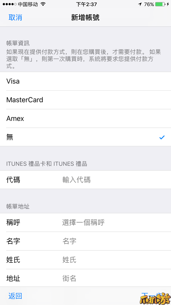 看到没,只有这样,付款方式才能选“无”,至于香港地址和电话就随便百度一下可以了。完成之后会有邮箱验证,搞定就登录中国香港地区的Apple Store了