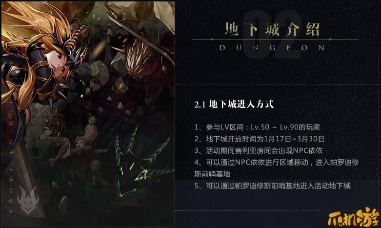 1.玩家可以随意进出帕罗迪修斯前哨基地,但Lv50以上才可以挑战地下城