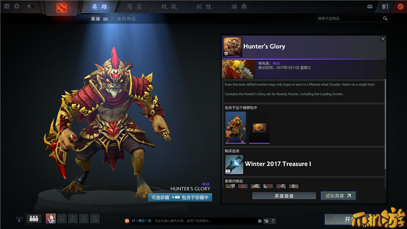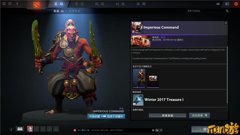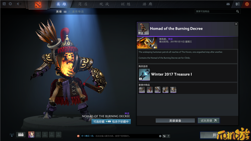 在这大年三十重要节日,DOTA2推出2017冬季珍藏I,各种中国风套装上线,现在进入客户端可直接购买2017勇士令状,仅售4800刀币。着手任务,拓展并挑战自己的Dota技艺;赢下预测,获得额外的勇士积分;完成目标的同时达成相应的成就,而这一切还将提升勇士等级,解锁一系列勇士令状赛季的奖励和珍藏。请前往Dota 2客户端预览2017冬季勇士令状。