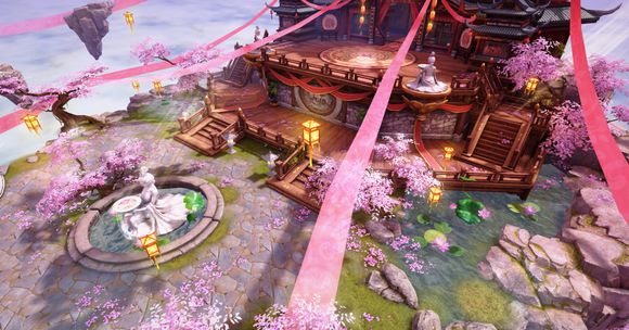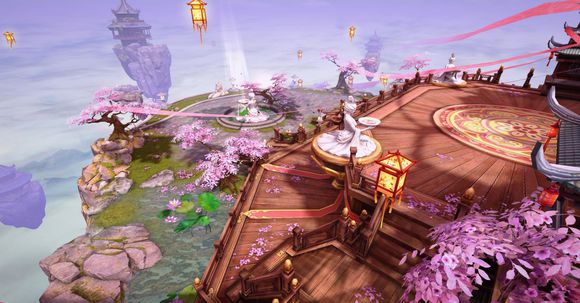 在这个离神最近的世界,每一场婚礼都应是完美的!《镇魔曲》手游“三生缘”版本中为新人们构建了一处独立的婚礼殿堂——悬浮于虚空,掩映桃花丛丛。飞扬的粉红花瓣海中,一盏盏由能工巧匠雕琢的大红彩灯交相辉映,为婚礼现场披上浪漫的光影轻纱。