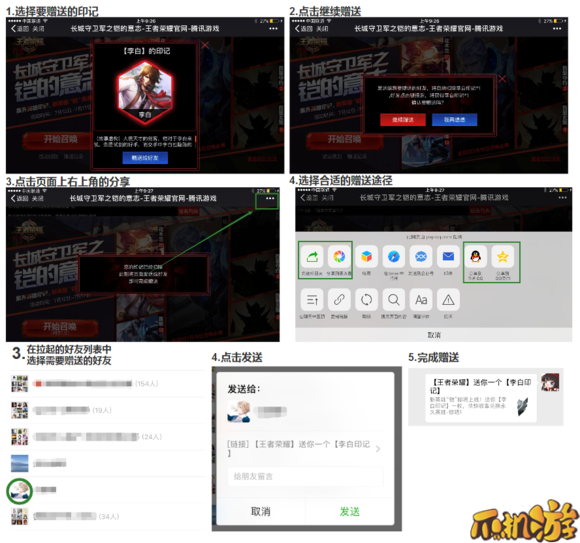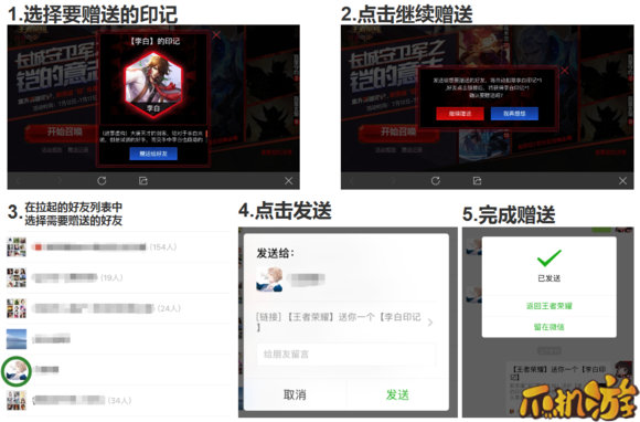 玩家进入游戏内该活动页面,选择想要赠送的印记,点击“赠送给好友”。当弹框出现提示后,选择“继续赠送”,并在好友列表中选定赠予的好友,将页面“发送”给对方,即可完成一次赠送。