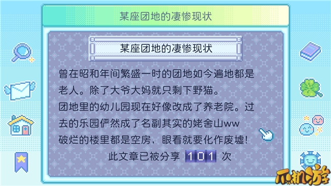 作为一款主打剧情的RPG游戏,《团地日和》并没有将重点放在宏大的主线,或是炫目的特效上,而是致力于通过各种细节,来展现现实生活中那些被我们忽略的人情与温暖。
